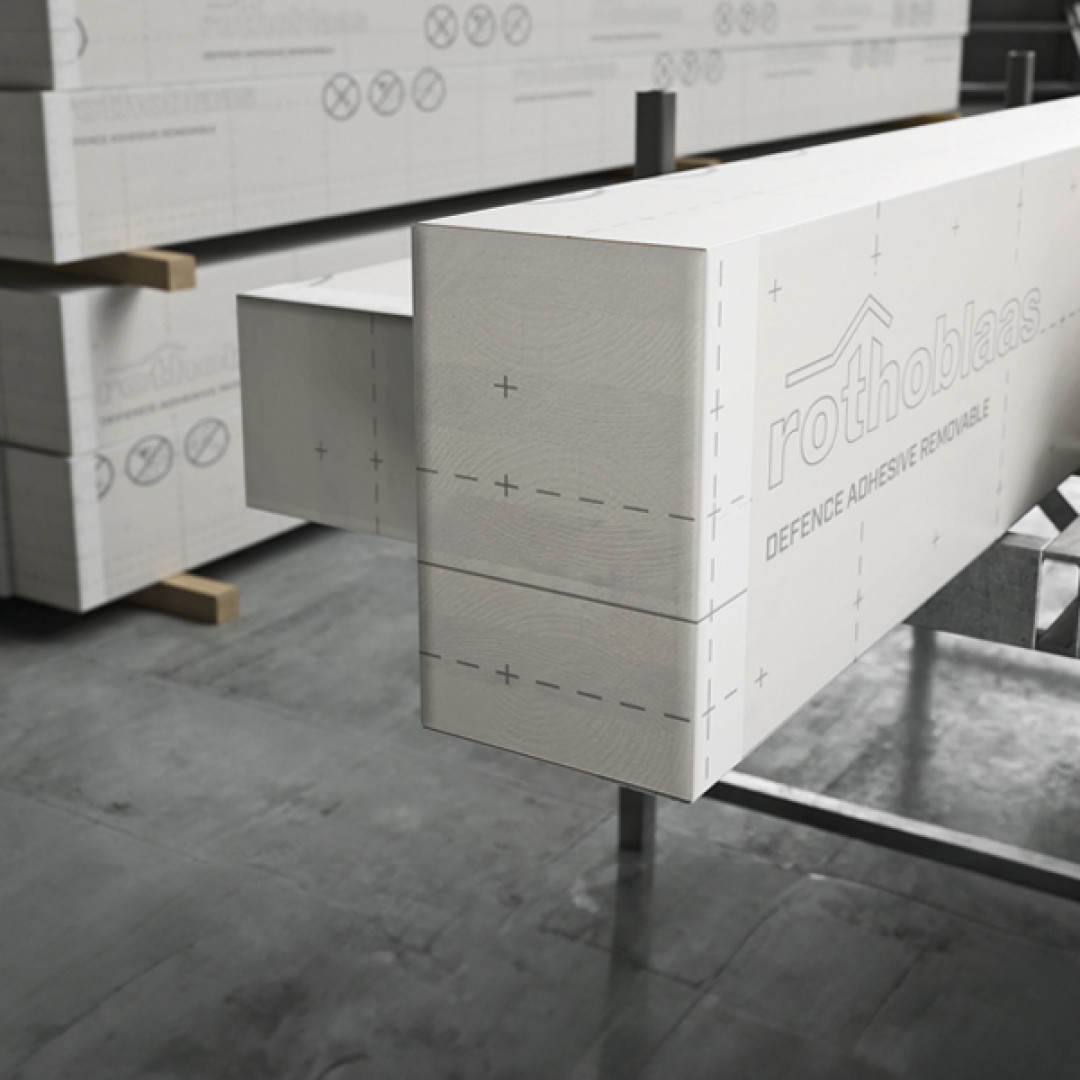Rothoblaas Defence Adhesive Removable er en selvklæbende og aftagelig beskyttelsesmembran til CLT og trækonstruktioner. Den er udviklet til midlertidig byggepladsbeskyttelse under transport, lagring og montage. Membranen beskytter effektivt mod støv, snavs, slid og mekanisk påvirkning. Den transparente PE-film bevarer træets naturlige udseende og gør overflader, markeringer og montagespor synlige. Det gør produktet ideelt til synlige CLT-elementer, limtræ og præfabrikerede træmoduler. Membranen sikrer, at træets finish forbliver intakt gennem hele byggeprocessen.